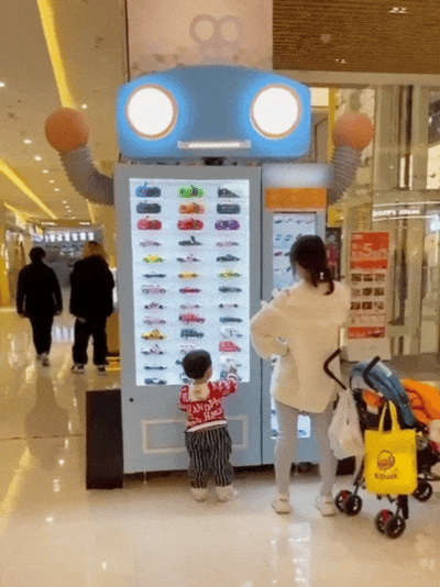 售货机采用可调节货道设计,兼容从迷你汽车模型到大型机器人玩具的多种尺寸商品。无论是汽车模型、机器人、积木、手办还是益智玩具,都能轻松上架,助您实现多元化、高毛利组合销售。